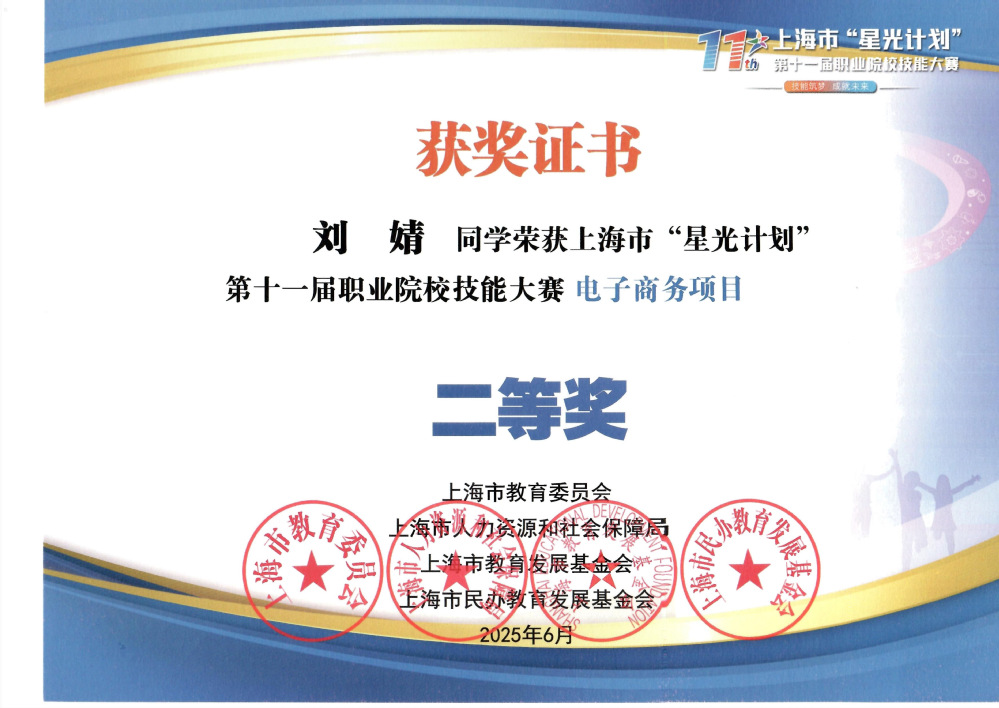 上海市“星光计划”第十一届职业院校技能大赛电子商务(中职组)项目二等奖
