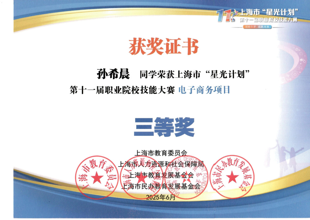 上海市“星光计划”第十一届职业院校技能大赛电子商务(中职组)项目三等奖