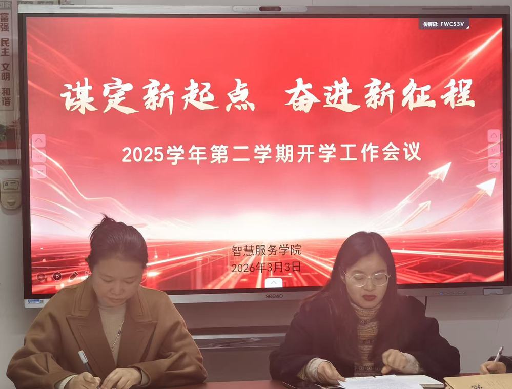 本次开学工作会议的顺利召开,不仅为学院新学期各项工作的开展理清了思路、明确了方向,更激发了全体教职工的工作热情和。2026年,智慧服务学院全体同仁人将紧扣“专业适配产业、人才服务发展”的主线,以立德树人为根本,抓实抓细专业建设等各项工作,努力打造特色鲜明的人才培养高地,以更加优异的成绩推动学院工作高质量发展!