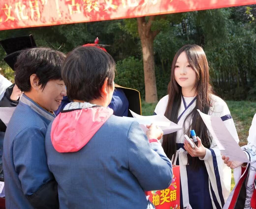 白君雅同学同样注重在集体中成长,在协作中闪光。在学校“中华传统文化月”系列活动中,她积极参与古代服饰文化秀。为完美呈现中华传统服饰之美,她查阅大量资料,深入学习服饰形制与历史内涵,与团队成员一道,以流动展览的形式让沉睡的华服“活”了起来,使师生在沉浸式体验中感悟文化魅力,生动诠释了“以文化人”的育人成效。此外,作为学院篮球队领队,在第三届“科创杯”篮球赛中,她不仅是组织协调者,更是团队精神的守护者。