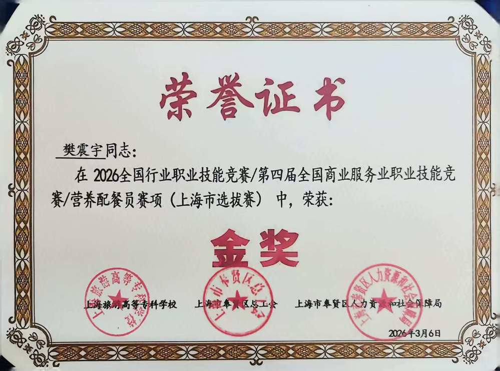 2026全国行业职业技能竞赛/第四届全国商业服务业职业技能竞赛/营养配餐员赛项(上海选拔赛)特金奖(教师))