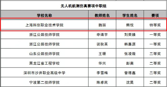 在无人机航测仿真赛项(中职组)中,我校智能建造学院学生熊悦凭借扎实的专业基础、熟练的操作技能和稳定的临场发挥,从众多参赛选手中脱颖而出,荣获该赛项特等奖,也是该组别全国唯一获此最高奖项的选手。魏丽老师凭借出色的指导工作,同时获评“优秀指导教师奖”。