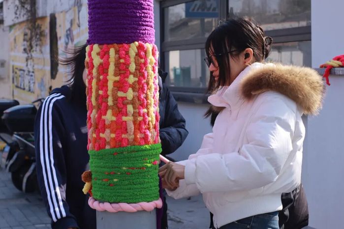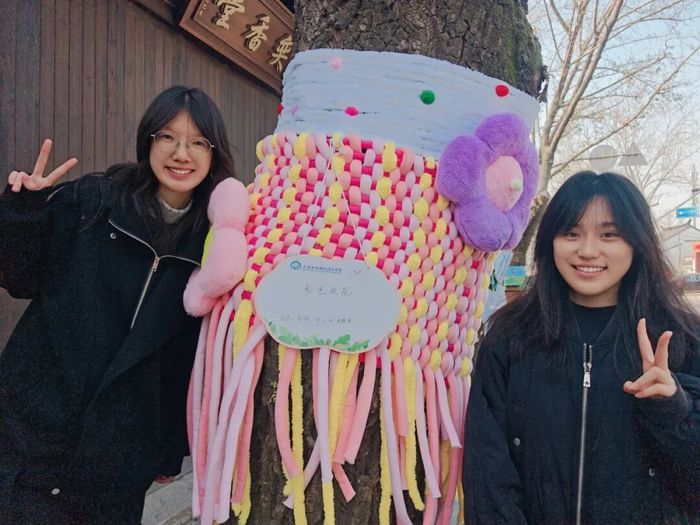 活动现场,同学们迅速分工,用五彩斑斓的毛线和充满童趣的装饰,为街边的老树穿上了厚厚的“新衣”,让这条江南古街在寒冬中焕发出别样的温暖与生机。指导老师们一边传授技巧,一边讲解古建筑与树木共生的生态意义。经过一番忙碌,一件件色彩明快、样式规整的树木防寒“冬衣”陆续完工,成为古街冬日里的特色景观,吸引不少市民驻足观赏、拍照记录。