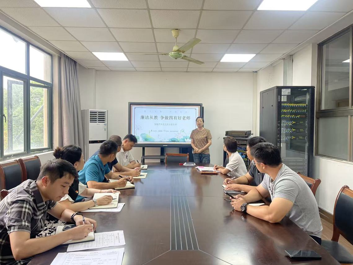 为持续巩固中央八项规定精神学习教育成果,进一步加强师德师风建设,筑牢党员教师廉洁从教的思想根基,近日上海科创职业技术学院智能汽车党支部组织召开“廉洁从教,争做四有好老师”主题党课活动。活动由党支部书记徐华伟同志主讲,支部全体党员出席本次会议。