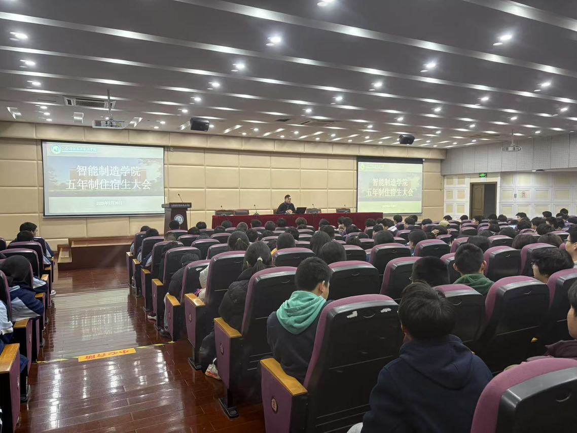 2025年2月20日晚,智能制造学院副院长毕波主持召开了全体五年制住宿生大会,旨在进一步规范住宿生的晚自修秩序,提升校园生活质量,促进学生全面发展。