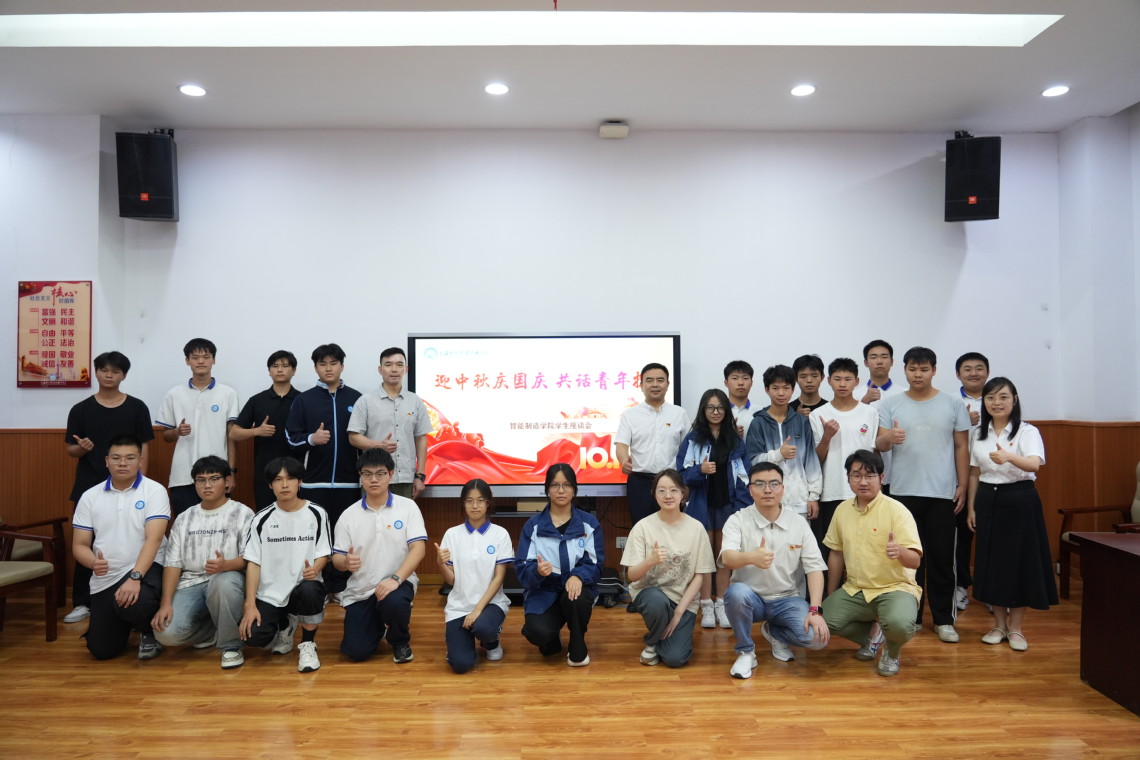 为庆祝中华人民共和国成立76周年,喜迎中秋佳节,弘扬爱国主义精神,厚植家国情怀,2025年9月30日中午,智能制造学院在9-101会议室举办“迎中秋庆国庆 共话青年担当”学生代表座谈会。智能制造学院党支部书记赵乃永、校团委书记沙榆翔、智能制造学院副院长毕波,以及师生代表共计24人齐聚一堂,围绕“青年使命担当”展开深入交流。座谈会由毕波主持。