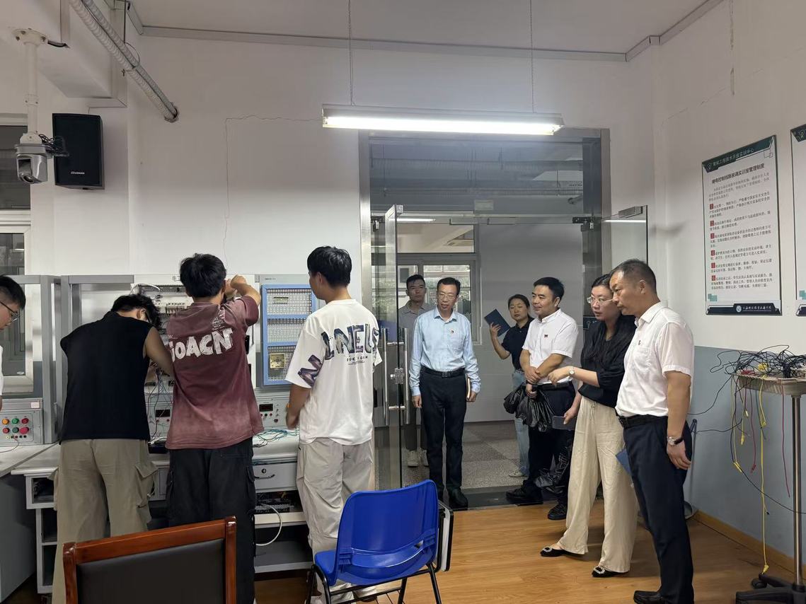 座谈前,何锋一行实地查看了智能制造学院教学楼、实训中心、党建阵地和学习教育总结开展情况对学生管理、环境育人、实训场地布局和党建思政元素的融入提出指导建议,强调要持续夯实教学阵地的党建基础,让学生在技能提升的同时,筑牢思想根基。
