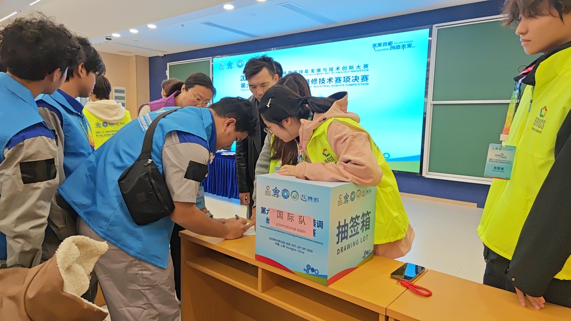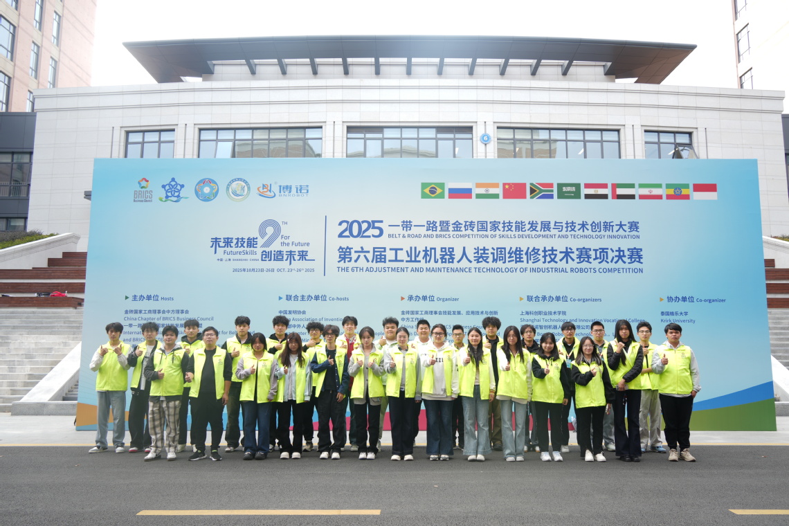 2025年10月26日,由上海科创职业技术学院承办的2025一带一路暨金砖国家技能发展与技术创新大赛之“第六届工业机器人装调维修技术”赛项决赛顺利落下帷幕。本次大赛不仅是智能制造领域技能比拼的重要平台,更成为展现青年组织力与奉献精神的窗口。从10月22日至26日,一群身着荧光黄马甲的志愿者始终活跃在赛场内外,以细致周到的服务为赛事织就了一张全方位、无死角的保障网,而他们的高效协作,正是智能制造学院与学院团委通力合作的生动体现。