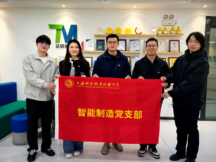 为深入贯彻党的创新驱动发展战略,以党建赋能“双师型”教师队伍建设,近日,上海科创职业技术学院智能制造学院第二党小组以“党建+产业实践”为核心,组织党员教师赴上海达明机器人公司开展主题党日活动。智能制造学院院长姜萍、工业机器人教研组组长王倩、实训中心负责人吴治国等党员教师代表参与,以实际行动推动党建与产教融合深度融合。